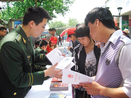 昨天下午,婺城区消防大队工作人员在市人民广场宣传新《消防法》。活动现场,消防人员一边向过往的市民发放新消防法的宣传资料,一边耐心地为前来咨询的市民答疑解惑。区消防大队相关负责人表示,他们将结合实际,把消防宣传向农村、社区、企业和学校进一步延伸,让群众掌握防火、灭火等知识。陈 婷 摄