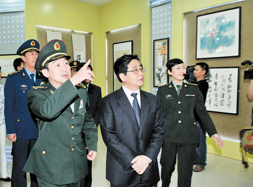 5月9日下午,出席中央军委命名大会的军地领导刘振起、彭小枫、赵洪祝等参观了二炮驻金某部孟祥斌事迹陈列馆。据了解,该陈列馆共收藏了200多件(幅)珍贵资料(图片),以及婺城知名书画家30多幅艺术作品,生动展现了英雄成长的历程。自去年开馆以来,共接待了3000多名群众参观。