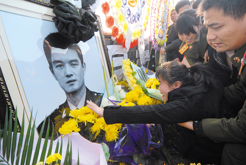 “我是特地从罗店赶过来悼念英雄的,这么好的人不该走啊。”12月1日晚上8点,专程从家里赶来的陈先生点燃香烛,默默地伫立在英雄遗像前说。与陈先生一起凭吊的还有他的女儿,她是浙师大的一名学生。这几天,她和同学们都在谈论英雄舍身救人的感人事迹。“我们曾以为英雄已离我们远去,其实英雄就在我们身边,我很敬佩这名军官,他是我们这个社会最可爱的人。”这名同学深情地对记者说。