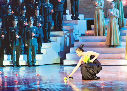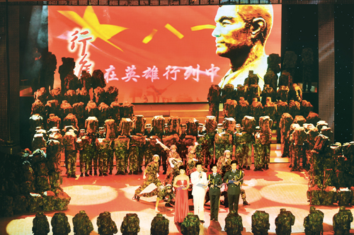 当晚,1000多名部队官兵、群众代表和100多名演职人员一起,在鲜红的八一军旗下,演绎了一场与英雄的无声对话:祥斌,你把无私的大爱写在了人间,你是我们心目中永远的英雄,你是我们永远学习的好榜样。