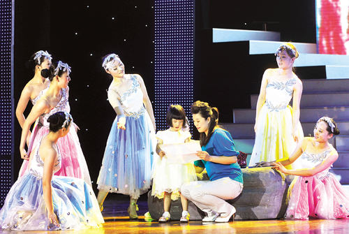 “妈妈,我们一起去看爸爸好不好,他答应给我买一双红皮鞋的……”小音乐剧《爱的礼物》那一声天真幼稚的童声,让坐在观众席上的叶庆华再也忍不住悲痛,泪水尽情流淌。