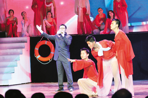 舞台上,一群身穿红白轻纱的舞者,在无声的跳跃,他们在惊呼,祥斌,危险;他们在等待,祥斌,快回来吧。然而,回答他们的,却是沉静的婺江水。祥斌,永远地走了……由二炮文工团倾情演绎的情景舞蹈《生命绝唱》让观众由衷地感动。