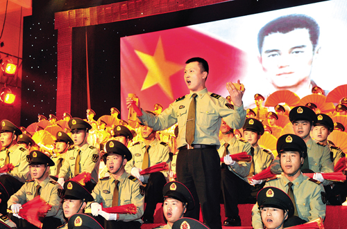 “ 孟祥斌,我的好榜样,学习你,报效国家永不忘,学习你,军人荣誉是第一……”面对英雄的雕像,参加晚会的1000多名官兵和观众发出了由衷的心声——《孟祥斌,我的好榜样》。