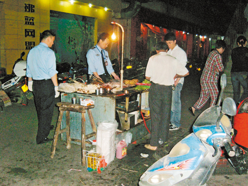 日前,婺城执法分局组织城东中队对胜利南街占道经营开展了一次集中整治。为巩固整治成果,城东中队每天还安排人员在胜利街错时夜间蹲点执勤,确保占道经营不回潮。通讯员 朱满秋 摄