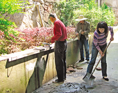 | 灾区无假日 | 杨思岭社区修补花坛迎国检 |