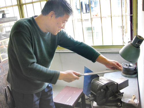 昨日,家住城东街道青春路社区的毛伍全把自己做的不锈钢汤勺送给隔壁邻居王大妈,毛伍全是一名退休在家的老钣焊工,一有时间就拿家里一堆不锈钢边角料“搞创作”。毛伍全说,别看汤勺锅铲都是小玩意,由于不锈钢硬度大、工序多,花的时间也不短。他做的东西不卖钱,只当是送给亲朋好友、隔壁邻居的一份礼物。(记者 李忆)