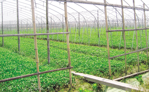 种得多了,盛福建又开始有了新的想法:能不能采用大棚种植的方法,让马兰头增加收成呢?“在人工栽培条件下,大棚马兰头是一种一年四季均可采收的蔬菜,且栽种一次可连续采收多年。一年四季只要不断地剪去嫩梢,它就会不断地长出嫩梢,不会开花,不会结籽,源源不断地供人们采剪和食用。” 盛福建介绍说,清明过后,揭去大棚架上的塑料薄膜,让其自然生长,只要勤管理,勤施肥,其嫩梢产量比大棚覆盖期间还高。此外,特别到了七八月蔬菜淡季,人工栽培的马兰填补了蔬菜淡季中叶菜类的空缺,虽然价格比春节期间低,但其经济效益仍比一般蔬菜高1~2倍 。