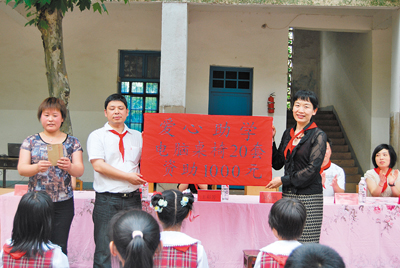 日前,金职院师范学院的部分教师和学生党员向琅琊镇大岩中心小学捐赠了价值近4000元的电脑桌椅。据悉,这是该院语数传媒专业学生支部为扶助山区教育发起的爱心系列活动之一。 王彩芳 摄