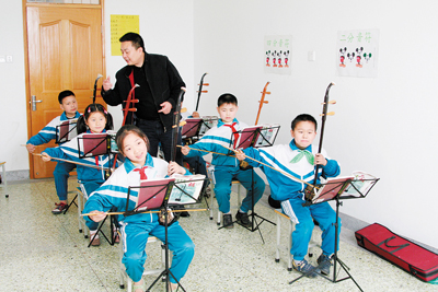 每天下午放学前的1个小时体艺活动时间,柳湖小学教学楼内乐声大作,钢琴、电子琴、小提琴……此时教师们也放下手中的活计,坐在学生身边认真示范、悉心指点、<