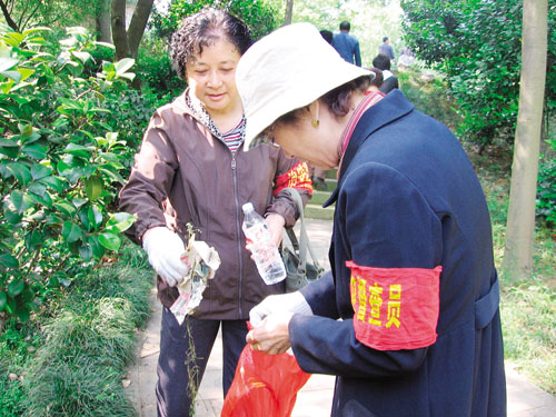 在活动现场,志愿者分为8个小组,有的做起劝导员;有的拿着铁夹、垃圾袋拣垃圾,游客们见了也都加入到志愿者活动中来。(通讯员 钟守斌)