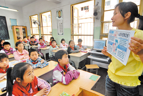 日前,婺城区外来民工子弟学校的授课教师运用多媒体教学设备,向学生们讲解如何防控甲型H1N1流感,并提醒学生应该勤洗手、少“扎堆”,保证睡眠,提高自身免疫力和自我保护能力。