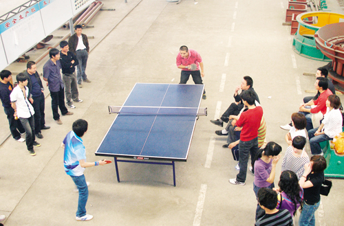 5月4日上午, 琅琊镇金龙水电设备厂里热闹非凡, 来自全镇各行政村和企事业单位的49名青年欢聚一堂,参加了由镇团委举办的“金龙杯纪念五四运动90周年”乒乓球赛。