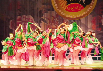 日前,由婺城区假日活动中心等单位承办的庆祝祖国母亲60华诞——“假日杯”市区中小学生文艺会演在市人民大会堂隆重举行。会演分“爱的旋律”、“拼搏的歌”、“奋斗的号角”和“成长之声”四个篇章,来自婺城区30多所中小学的400多名演员参加了演出。经过评选,金师附小、环城小学、白龙桥小学、实验中学分别获得了声乐、器乐、歌舞等项目的一等奖。见习记者 周玉南 摄