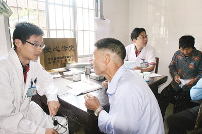 6月6日上午,金华市广福医院的医生来到沙畈乡,为当地群众看病,并在沙畈乡卫生院设立爱心诊室,以缓解该乡村民看病难的问题。