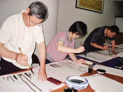 昨天中午,记者在区财政局看到,该局13名书画爱好者在听完老师的讲解后挥毫泼墨。据了解,该局从3月初组建书画兴趣组以来,利用每周二或周三中午一个小时的休息时间学书画。 “前段时间我们学了兰花的画法,最近学习毛竹的画法。书法主要靠平时临贴。收获还是很大的,学员基本掌握了如何用笔以及布局。”该局负责人表示。除此之外,区财政局根据不同年龄段组建了乒乓球小组等,利用中午一小时时间锻炼身体。 (记者 鲁蓉)