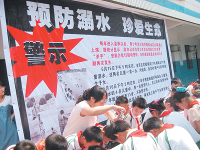 暑期即将到来,6月17日上午,婺城区民工子弟学校组织学生开展了暑期安全教育活动,提醒学生要随时注意安全。现场,全校师生收看了防溺水操作流程教育片,并以签名的形式许下自己的安全承诺,各班学生还成立了自纠小组进行全面督查,以确保学生安全度过暑期。李忆 摄