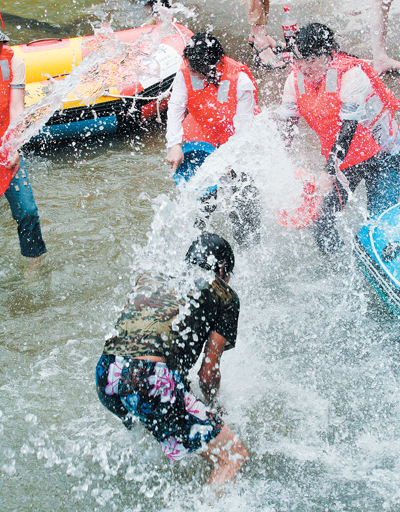 6月17日,记者在安地镇郑宅村的“龙溪漂流”景点看到,驱车前来漂流、游泳的游客络绎不绝。据介绍,近段时间,由于天气炎热,每天都有五六百人来这里避暑游玩。李忆 摄