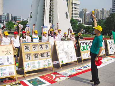 今年的6月5日是第38个世界环境日。当天,近千名志愿者齐聚市区人民广场,参加世界环境日主题活动启动仪式,分发环保宣传单,在场的广大市民还纷纷在绿色心愿幅上写下对环保事业的寄语。记者 李忆 摄