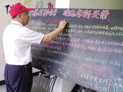 日前,城西街道小花园社区在居民中发起了“为广大考生创造良好的复习考试环境”倡议活动,并精心编制了“迎考小贴士”,社区老党员钟守斌还专门汇编了一期黑板报专刊,提醒居民在高考、中考期间尽量控制噪音,以自己的实际行动关爱学子、为考生加油。通讯员 胡聪勤 摄crack