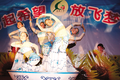 自1999年香港老人赵安中捐资建造了琅琊小学教学大楼后,该校的师生从此告别了阴暗潮湿的环境,学校也从此将艺术教育当作校园的灵魂加以发扬。十年来,琅琊小学以其特有的体艺风格,在省、市、区各级文艺表演中获奖,学校先后荣获各项荣誉27项。特别是2007年,今飞集团与该校结对办学,全校师生更加坚定了发扬艺术光辉、发扬艺术魅力的信心和决心。为了让“十年章回”校园文化艺术得到更好的展现,早在三四月,该校就拉开了校园文化艺术节准备的序幕。今年的艺术节,在传承以往艺术节的经验基础上,内容更为丰富,节目更加精彩,每个班级、每位参演的学生和老师,都对上台的节目进行了精心排练。在节目的策划上面,老师们做了精心的准备。有舞蹈、独唱、合唱、课本剧、婺剧清唱……在排练的过程中,老师们肯花时间、肯下功夫;同学们也不怕苦、不怕累,经常排练得汗流浃背。