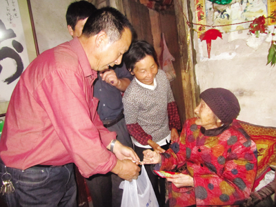 “重阳节就要到了,祝您健康长寿。”10月12日,白龙桥镇民政办和白龙桥管理处的工作人员来到东俞村,看望了村里的百岁老人郑汝奶,为老人送上长寿面和500元慰问金。据了解,目前,老人是白龙桥镇唯一一位百岁老人,现在由7个子女每月轮流照顾,从下月开始老人每月还可以领到300元高龄津贴。 记者 月映红 摄