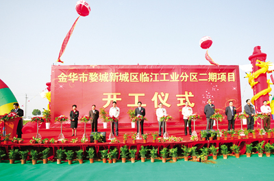 本报讯(记者 戴建东 胡甦窕 李丹)金秋十月,丹桂飘香。昨天上午,婺城新城区、金西开发区两大园区借着中国仙源湖第二届桂花节的东风,相继举行42家企业集体开工奠基仪式。市委副书记、市长陈昆忠宣布开工。市人大常委会副主任程子林,副市长金中梁,市政协副主席王建平,市政府秘书长傅利常,婺城区领导陈陆一、祝伦根、金登成、施素珍、张旭辉、王健等参加了仪式。