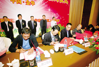 祝伦根向出席签约仪式的领导和企业界人士表示热烈的欢迎和衷心的感谢,并向与会代表介绍了婺城的投资环境。祝伦根说,婺城区拥有独特的区位、完善的平台、丰富的资源、高效的服务,婺城新城区、金西开发区、双龙风景区、仙源湖旅游度假区、浙中信息产业园等产业园区是婺城经济发展的主战场,他们定位明确、各具特色,又有着丰富的资源优势。未来五年婺城区将大力实施“主轴带动、工业立区、文化振兴、开放融合”四大战略,做大做强先进制造业、加快发展现代服务业、提升壮大高效生态农业,到2015年,努力把婺城建设成为经济实力较强、城市功能完备、创新能力活跃、城乡繁荣发展的浙中城市群核心城区。祝伦根期望,在婺城这块充满无限生机与广阔发展前景的土地上,各位企业家有更大的作为、更大的成就、更大的成功,引领更多的企业和客商在婺城投资兴业、发展壮大。