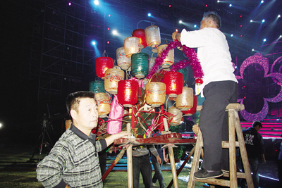 怡村的龙头会会长倪绍本告诉记者,他们村的板凳龙是在2000年新制的。半个月前,他接到区文化馆的通知,说要将板凳龙作为节目送上舞台,他们马上忙活起来了:准备祭品,购买材料,将桥上的灯罩、蜡烛全部都换成了新的。因为是农忙时节,刚开始,他担心人不好找。没想到,很多村民听说要将板凳龙带上晚会,纷纷要求参加。(记者 胡文英文/摄)