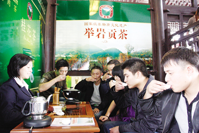 在当天的展销会现场,“采云间”茶园姑娘们熟练优雅的桂花茶茶艺表演,吸引了数十名市民的观看,成为活动的一大亮点,而泡好的桂花茶更是芳香四溢,一位来自金东区的周先生品茶后给出了这样的评价:“观之色泽艳丽,闻之香气扑鼻,品之浓爽甘醇。”据悉,当天,数百份桂花茶全部售完。
