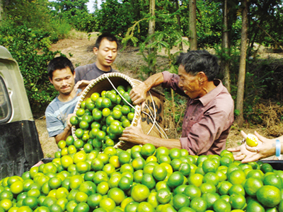 昨日,婺城区塘溪镇沙头村桔农严金权将一框框桔子装上汽车运往市场销售。据汤溪镇沙头村党支部书记戴增荣介绍,沙头村经常邀请专家培训指导柑桔种植,今年全村全部采用农家有机肥,使桔子口味非常纯正,来沙头村采摘的市民络绎不绝。图为客商正忙于收购沙头村蜜桔场景。通讯员 戴增荣 摄
