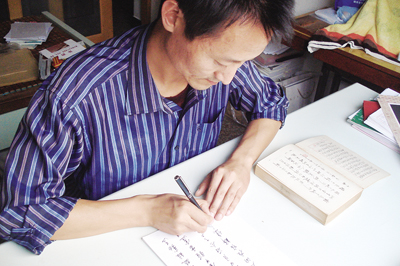 出来工作以后,他先是在味精厂工作了一段时间,味精厂倒闭,他随后进了尖峰集团。事有变故,只好自谋生路。1997年,他在金华一中等地举办了个人硬笔书法展,在金华,他在硬笔书法上的造诣,已经小有名气,前来请他执教书法的学校也多了起来。从此,他开始走上教授硬笔书法的道路。