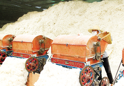 花园村村支书陈志松从事了多年的棉花收购生意,他说:“由于现在有的农户持观望心态,不愿意把籽棉拿出来卖,我停掉了棉站里的十多台加工机器,今年的产值也较去年低了许多。”记者发现,虽然陈志松的棉站里咋一看是堆积如山的新棉,可是几十台机器如果全部开足马力,用不了几天就会“断粮”。仓库里,已经压缩好成捆的成品也已经存货不多。“我们主要销售到杭州、宁波及本市的一些纺织厂,销路不愁,就是缺棉花。”陈志松说。