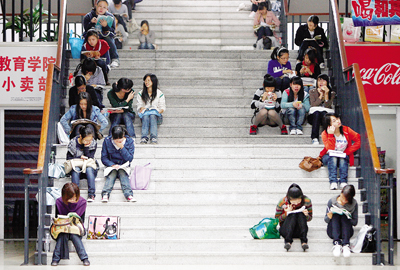 昨天早上,很多考生坐在教育学院的台阶上复习,准备8∶30分开考的教师资格证考试。据了解,昨天共有教师资格证考试、自学考试和全国执业兽医资格考试三项考试进行。
