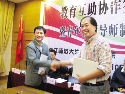 10月20日下午,金华市北苑小学与浙江师范大学教育技术系举行了教育互助协作签字仪式,并正式启动了青年教师导师制活动。作为“创先争优”实践活动的内容之一,北苑小学率先实行“青年教师导师制”,通过与大学实行教育互助协作,利用其优秀师资力量及教学资源,对北苑小学的教学信息化、数字化教学资源开发、教师专业发展、学校教科研等问题提供对口支援,以加速小学青年教师的成长,进一步实现教师队伍的优化。