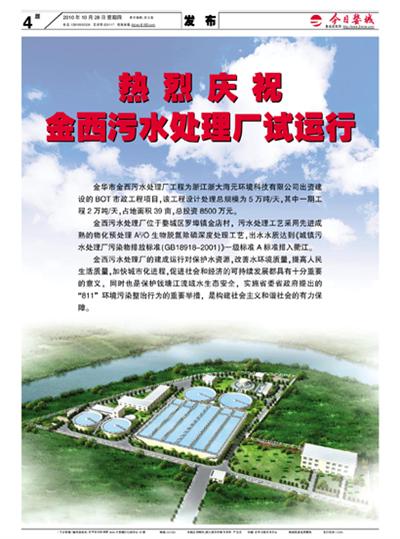 热烈庆祝金西污水处理厂试运行