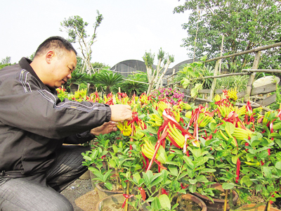 在金兰北线罗店段一花卉苗木种植场, 佛手的金色在满目的葱郁中显得格外显眼。现在是佛手上市的季节,随着佛手的药用价值逐渐被人熟知,今年的价格也随之高涨。