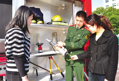 昨天是全国“119”消防宣传日,金华市消防支队官兵在市区金发广场举行消防救护装备展示,并向市民讲解防火、灭火和逃生等消防安全常识,提高市民的消防安全意识和逃生自救、灭火减灾的能力。