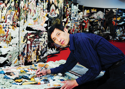 自古以来,镶嵌艺术多采用彩石为原料,进行小幅、单个制作,少有以玉石为对象,以如此大规模、大手笔的巨幅制作。因为玉石的硬度远大于彩石,纯手工雕刻的难度更是不在话下。王银华的玉石镶嵌《黄大仙》不仅是彩石镶嵌向玉石镶嵌的一个转变,也是镶嵌叙事主题的一个突破。以往的镶嵌艺术品,并不具有一个主题的连续展示,无法丰富其意义。而王银华的作品突破了这一困境,使得某一种文化现象以玉石镶嵌这种生动的形式得以凸显历史风貌。他在熟谙黄大仙的生平故事之后,提炼出十八个故事,以多折屏风来展现黄大仙的一生,堪称精美绝伦,令人叹为观止。