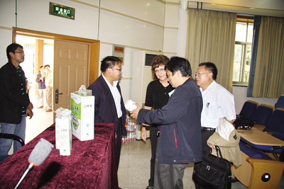 本报讯 世界首个适宜糖尿病人食用的“宜糖”米由金华市绿巨人生物技术有限公司开发成功后,引起了国际社会的广泛关注。近日,美国农业部农业研究署主任Anna Mc Clung和研究员严文贵,孟加拉国国家原子核农业研究所所长Sayadur Rahman,以及哥伦比亚的水稻专家等国际友人千里迢迢前来婺城,了解“宜糖”米技术。为便于国际友人的学术交流,浙江大学与绿巨人生物技术有限公司专门举办了水稻遗传育种与生物技术研讨会。国际专家除认真听取浙江大学的学者们介绍外,也介绍了各自国家的生物育种情况,还品尝了宜糖米,对宜糖米品种的选育和开发赞不绝口。美国农业部农业研究署主任Anna Mc Clung介绍,美国也开展相应技术的研究,但研究20年至今未获成功,培育高抗性淀粉的稻麦品种,是一个世界难题,中国的专家突破了这一世界难题,实在令人钦佩。孟加拉国国家原子核农业研究所所长Sayadur Rahman表示,孟加拉国国民全部以稻米为主食,这种产品在该国也会有巨大的市场。