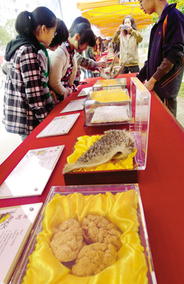 由浙江中医药大学药学院本草社举办的“中草药嘉年华校园行”,11月21日走进浙江师范大学校。整个嘉年华活动由腊叶标本制作、中药谜语典故竞猜、珍稀药材展示、名贵药材鉴定、大药翁等小型活动组成。据悉,举办“中草药嘉年华”活动,目的是让更多的大学生了解中医药文化知识,支持我国的中医药事业,同时也促进高校间精品文化活动的交流。 记者 方晟 摄
