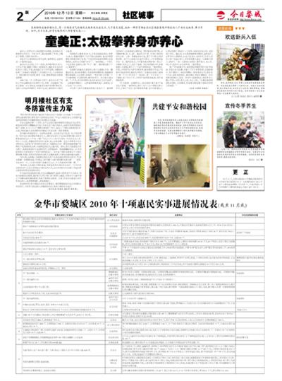 金华市婺城区2010年十项惠民实事进展情况表(截至11月底)