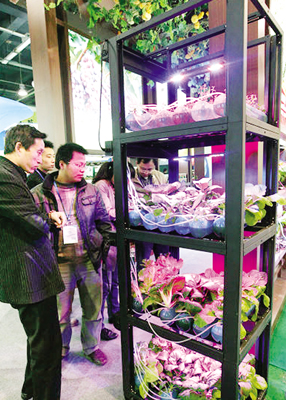 11月25日,在2010浙江农业博览会的举办场馆杭州和平国际会展中心内,一种名叫“office农场”的桌面微型蔬菜种植系统吸引不少都市白领的目光。据介绍,该蔬菜种植系统集成了自动控制、极光光源、水培系统、植物营养技术,突破了传统种菜和虚拟种菜,展示了一种全新的种植体验。