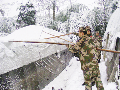 日前,金华武警支队第三大队九中队及时帮助蒋堂镇村民修复被雪压塌的大棚,受到了当地群众好评。