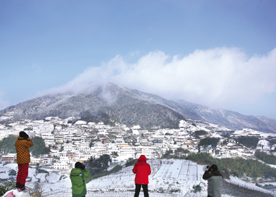 周末的一场雪,把北山装点得银装素裹,一派北国风光。美丽的雾凇、晶莹剔透的冰挂,吸引了许多游人登山赏雪、拍照。方晟 摄