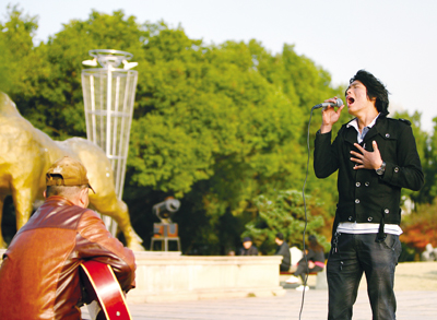 “小龙的声音属于中高音,适合唱摇滚。”老赵说。说着说着,小龙伴着吉他,引吭高歌,给我们带来了一首充满激情与力量的《死了都要爱》。没有经过训练的声音虽然少了点原唱的穿透力,但那种十分投入,近乎疯狂的呐喊,还是让路过的人感受到了一丝年轻无敌的感染力……“时常有人会围着听,大家也会鼓掌,这对我来说,就是很好的鼓励。”小龙腼腆地笑了笑。