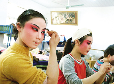 据不完全统计,如今活跃在演出市场的农村婺剧剧团有近100个,这些民营文艺表演团体在传承婺剧传统文化艺术方面发挥了重要作用。这几年,政府对民营文艺表演团体越来越重视,从2007年开始的婺剧青年演员研修班的开展,使农村业余剧团演员表演水平及艺术水准普遍不高的状况有了显著改观,于是演员妆面不专业、缺失美感的问题也就日益凸显,成为观众在台下、戏迷论坛中不断探讨的话题。