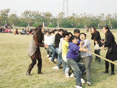11月25日下午,九峰职校举行了一场别开生面的拔河比赛。在半天的比赛过程中,现场气氛热烈高涨,各班参赛队员坚持不懈,奋勇拼搏。随着裁判“开始”口令声落,竞技双方队员同时发力,紧握手中的绳子,降低重心,齐心协力往后拉。全体师生激情澎湃,加油声、呐喊声、助威声,声声不绝,整个田径场沸腾无比。
