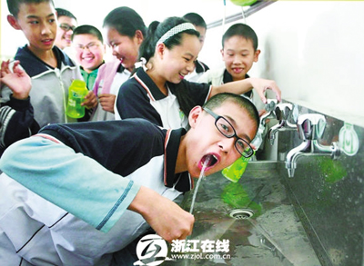 温州第23中学近日安装的全自动商务直饮水机,可让学生随时喝上冷热直饮水。