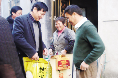 12月28日上午,婺城环保分局负责人来到乾溪乡王店村,走访慰问了困难户朱樟明一家,为他们带去了食用油、大米等年货,并送上1000元慰问金。当环保分局负责人了解到,朱樟明一家没有收入来源时,当即为他介绍了工作,并解决了他的职工社会养老保险。记者 胡文英 摄