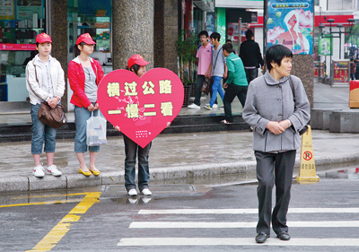 5月9日,市交警大队、浙江师范大学行知法学分院和城中街道后街社区,在市区人民广场开展了新交通法宣传活动。大学生志愿者们走上街头,举起各种爱心口号的指示牌,温馨提醒行人文明过马路。
